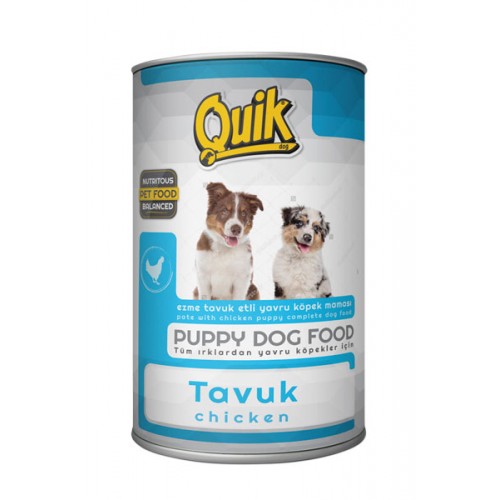 QUIK Tavuklu Yavru Köpek Konservesi 400 gr; Tam, dengeli ve lezzetli bir köpek mamasıdır. Vitamin katkılıdır, sindirimi kolaydır, zengin protein içeriği zindelik ve enerji verir. Tavuklu yapısıyla hareketli ve Protein ihtiyacı yüksek köpeklerde ve yavru köpeklerde kullanılır.